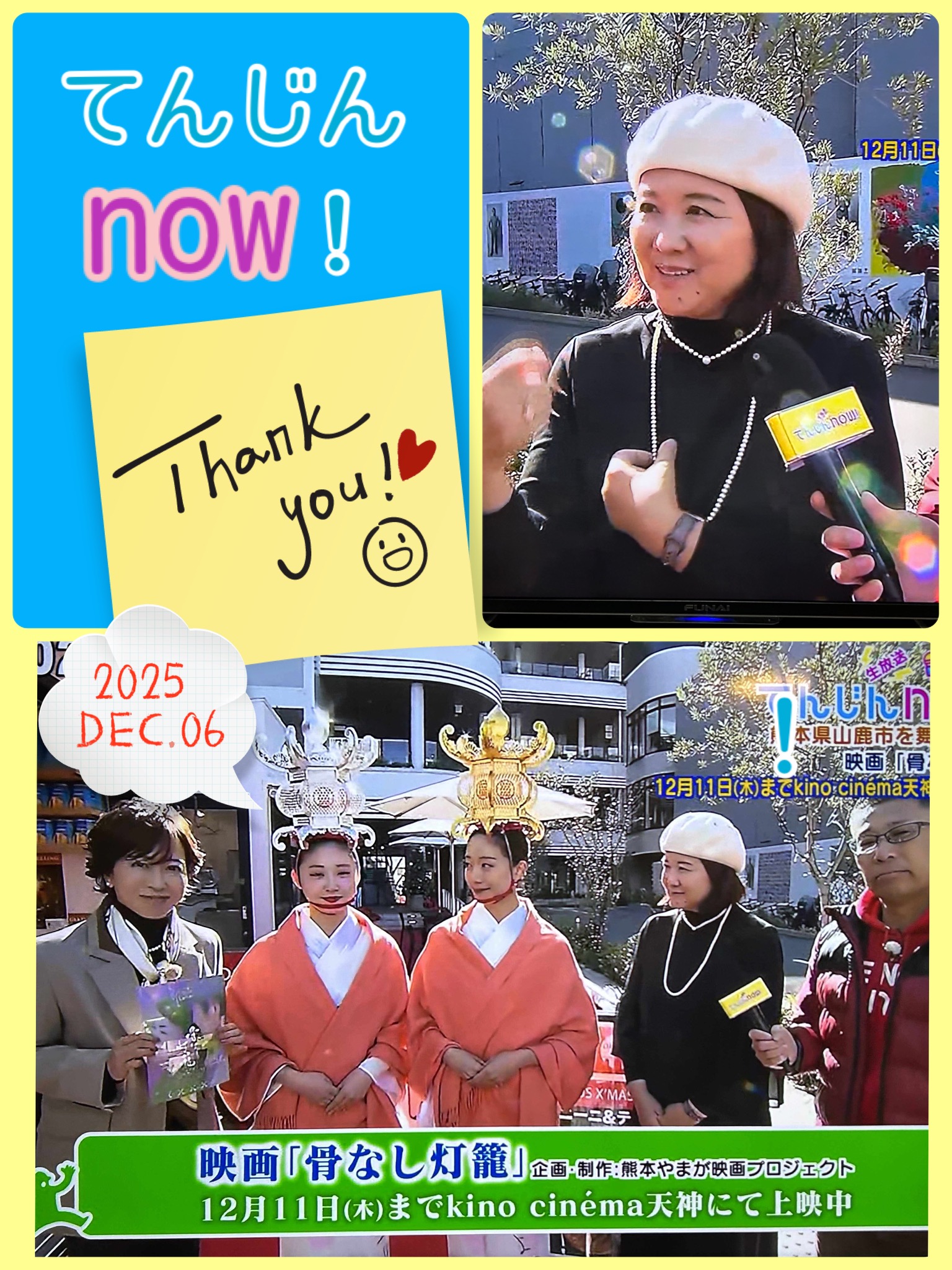 灯籠娘さん(山鹿灯籠踊り保存会)たちの「山鹿灯籠踊り」はとても美しく、会場を沸かせていました。山鹿から来てくれた灯籠娘のお二人、西日本テレビ「てんじんnow!」の生中継にも出演してくれてありがとう!