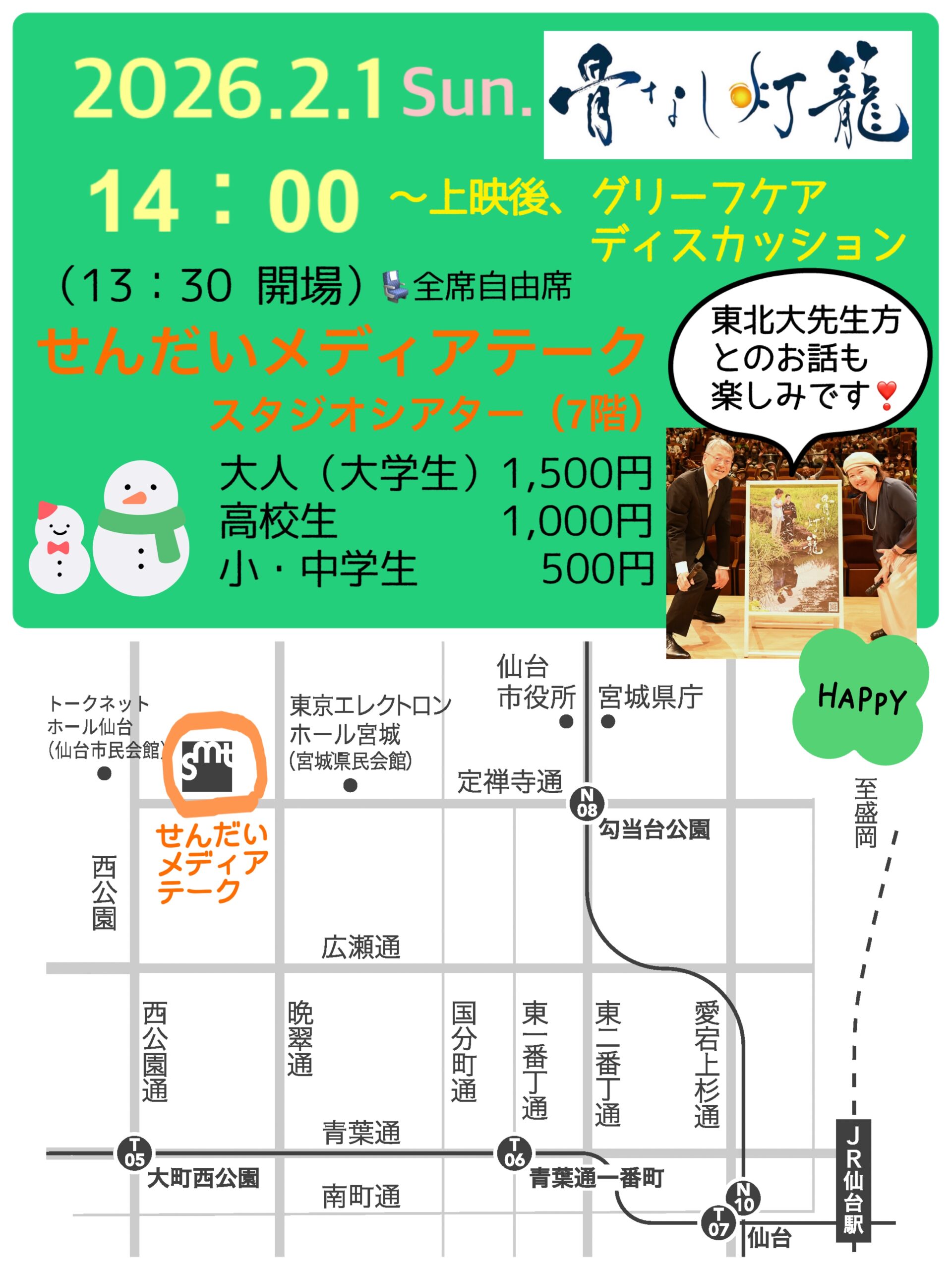 <仙台>2月1日(日)1日限りのグリーフケア特別上映会、決定!