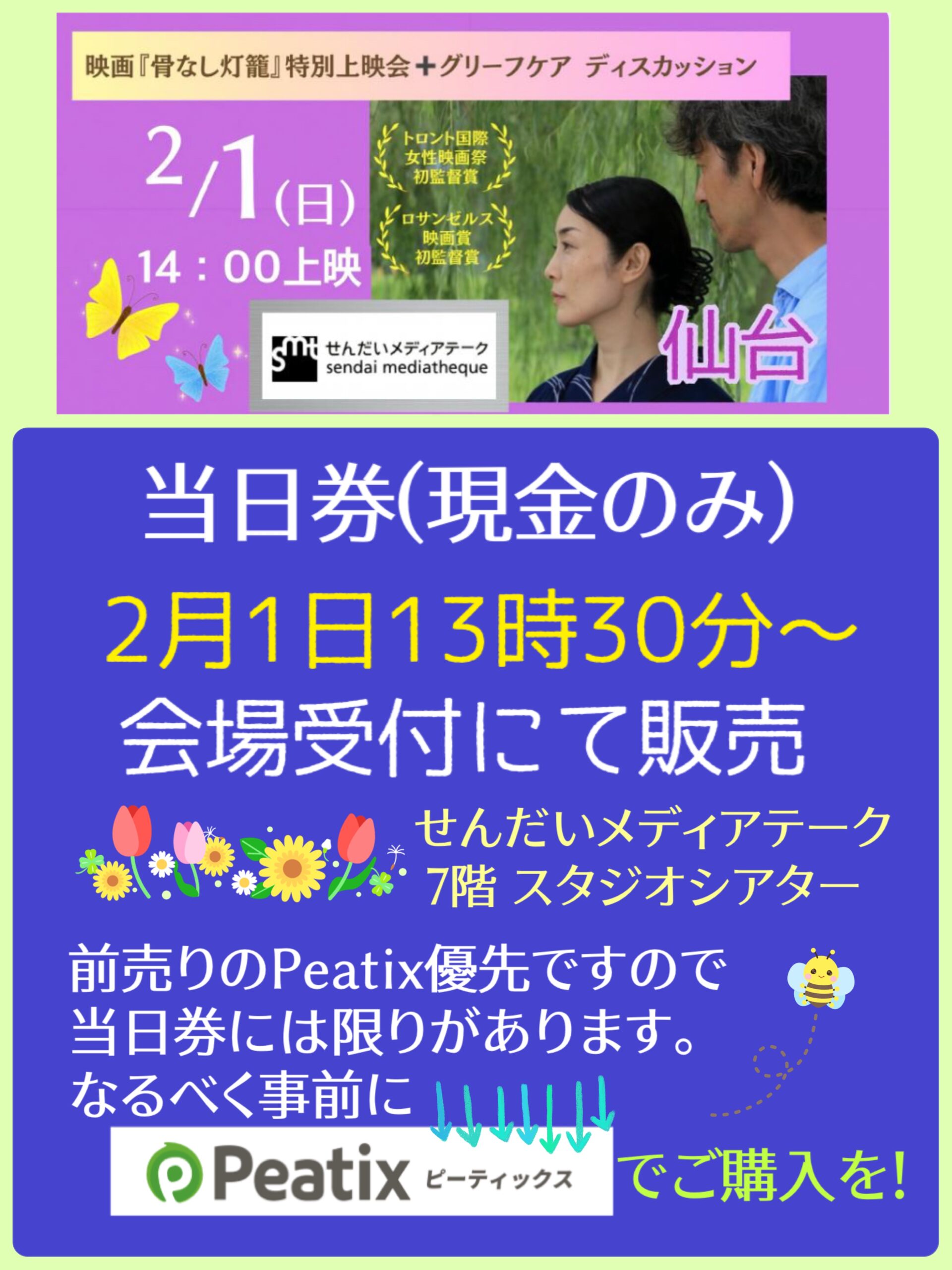 1日1回限定の特別上映会で恐縮ですが、1人でもたくさんの方にいらしていただきたいです。お会いできるのを楽しみにしています。