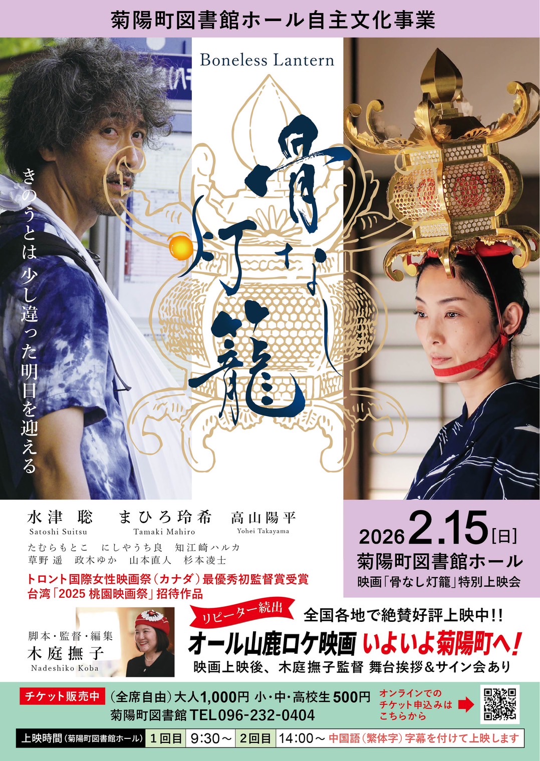 山鹿を舞台にした映画「骨なし灯籠」を2月15日(日)、図書館ホールにて上映いたします。