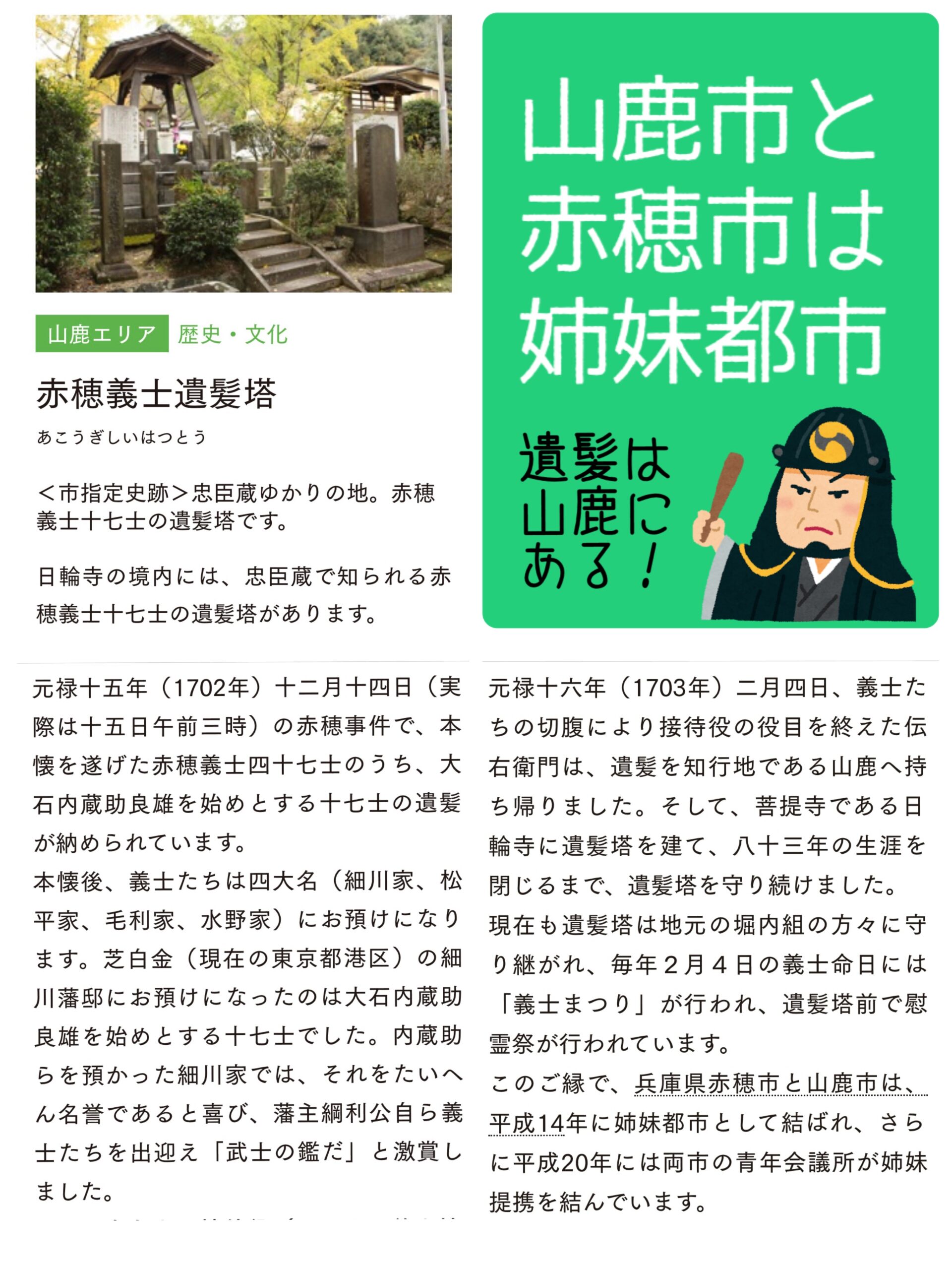 赤穂義士と深いご縁のある山鹿、